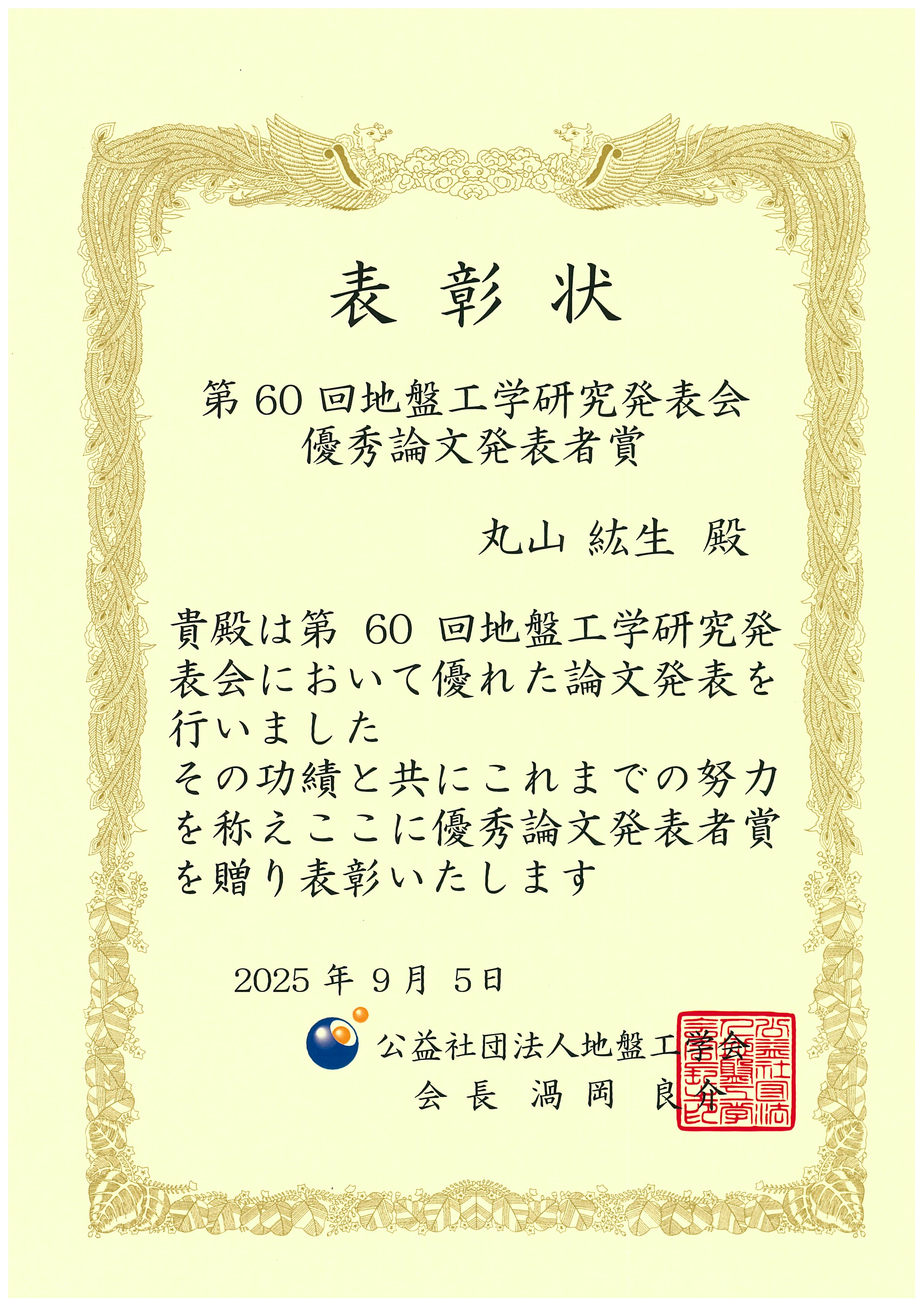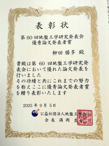 | 関連Website | 第60回地盤工学研究発表会 優秀論文発表者賞一覧 | |