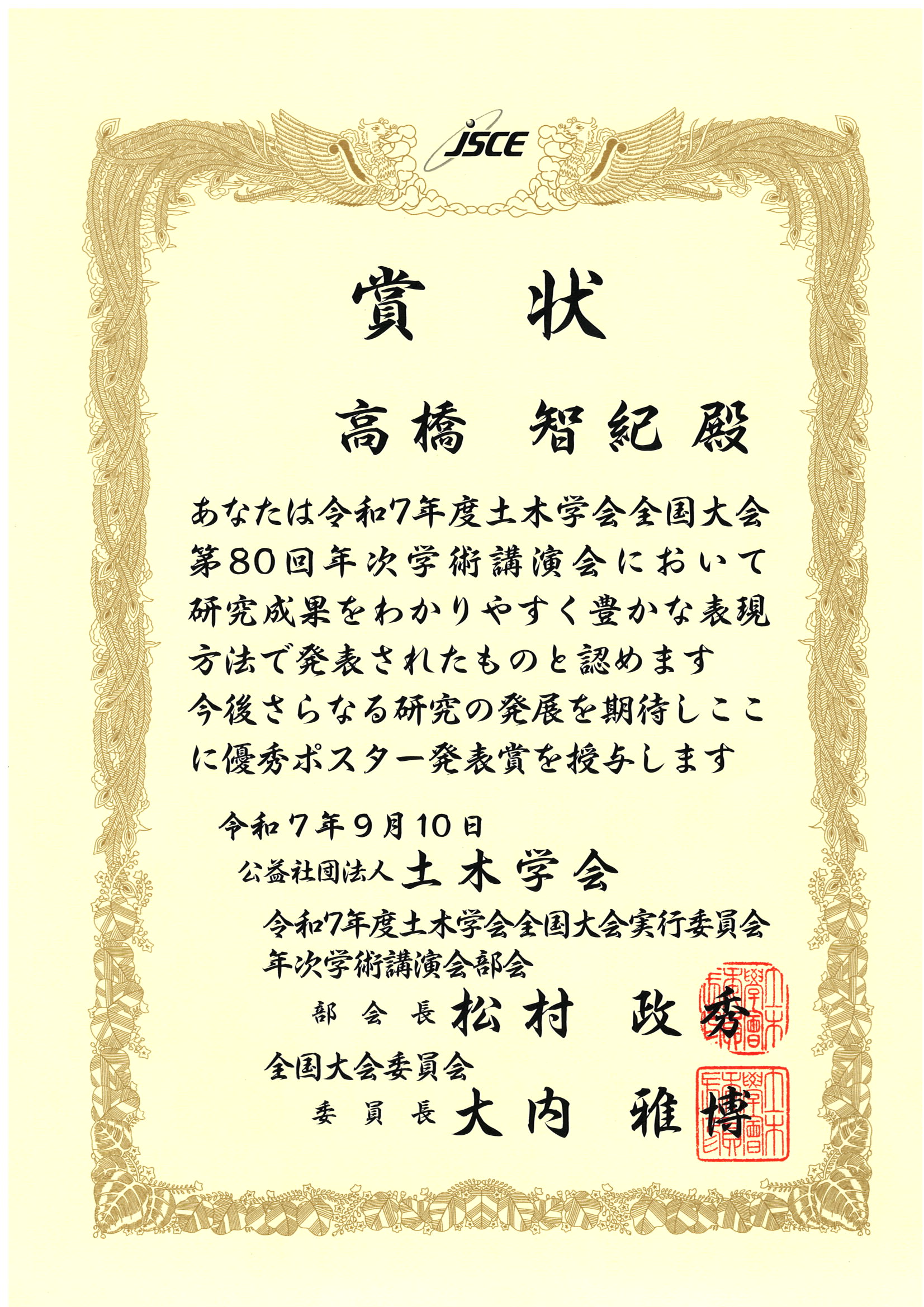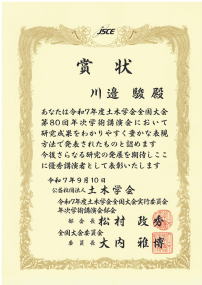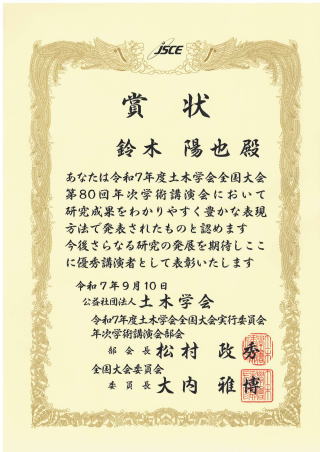 | 関連Website | 土木学会第80回年次学術講演会優秀講演者賞一覧 土木学会第80回年次学術講演会ポスター賞一覧 |